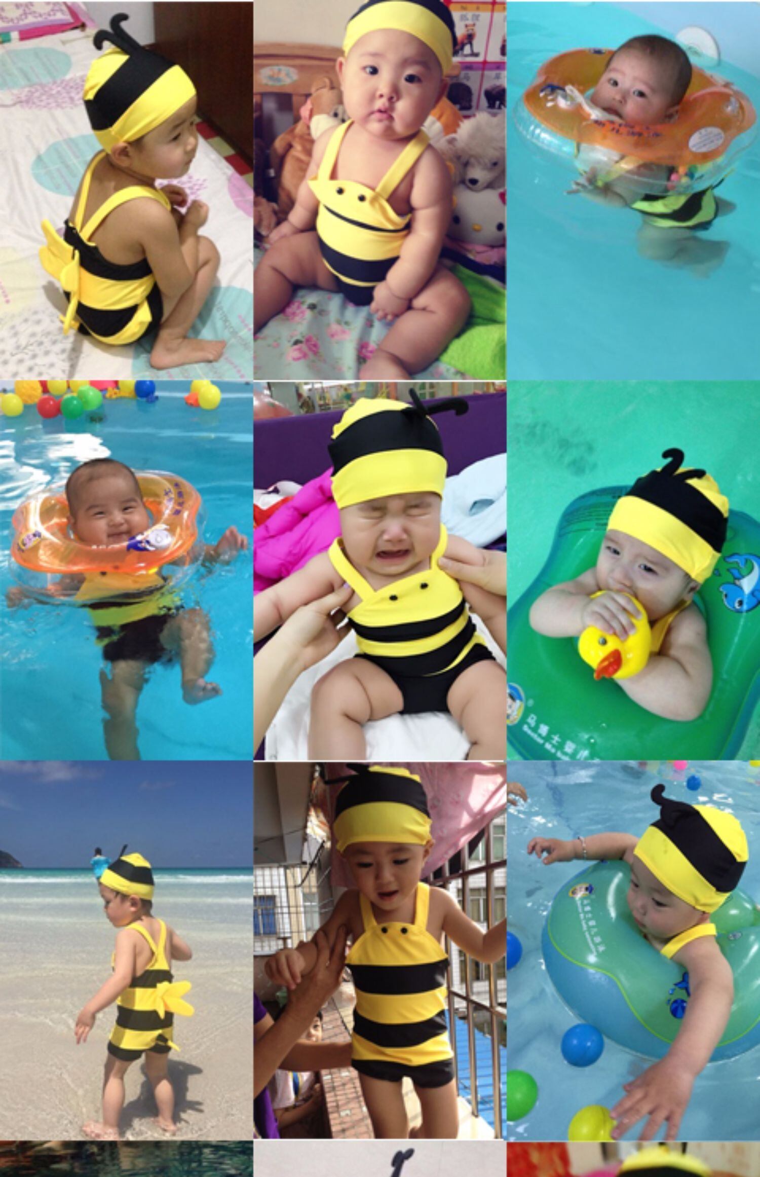 色:ビーイエロー,ビーイエロー+ホワイトスワンシート,ビーイエロー+ピンクフラミンゴシート,黄蜂+バスローブロングディアー,ビーイエロー+オレンジスイミングゴーグル,黄蜂+腕輪フラミンゴ,黄色い蜂+ワカメ