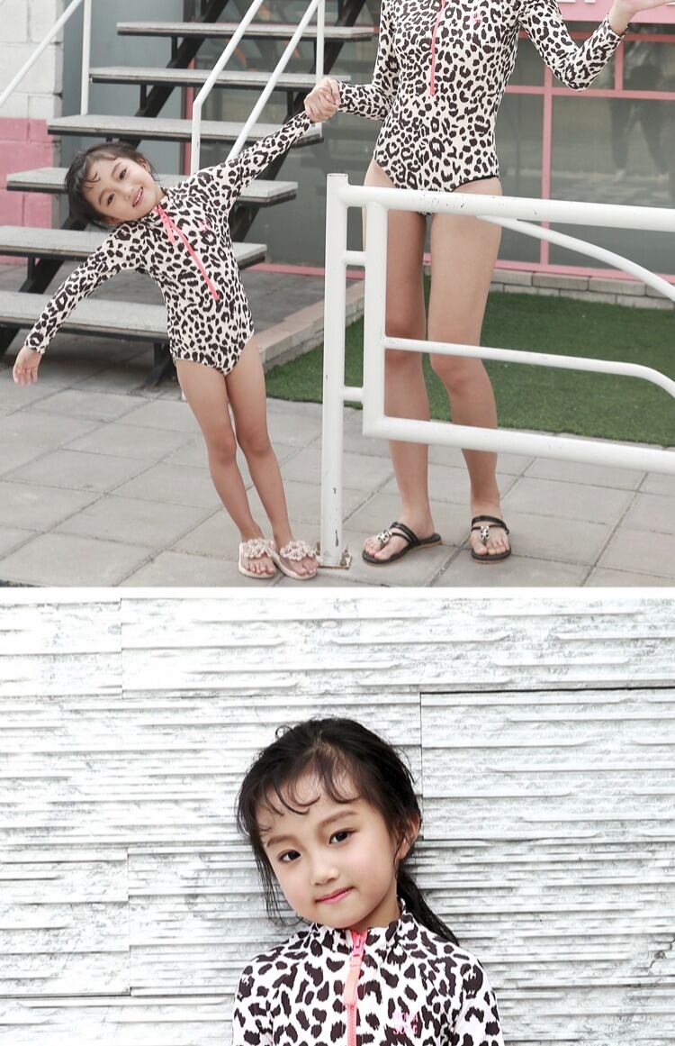 子供用水着ワンピースヒョウ柄長袖日焼け止めベビーベビー水着親子春母娘水着 ロング スプリング 春物 SNSで話題 KIDS男の子 KIDS女の子 韓国ファッション 男の子ママ 女の子ママ 海外キッズファッション 親子コーデ 今日の服 プチプラ mi038937822