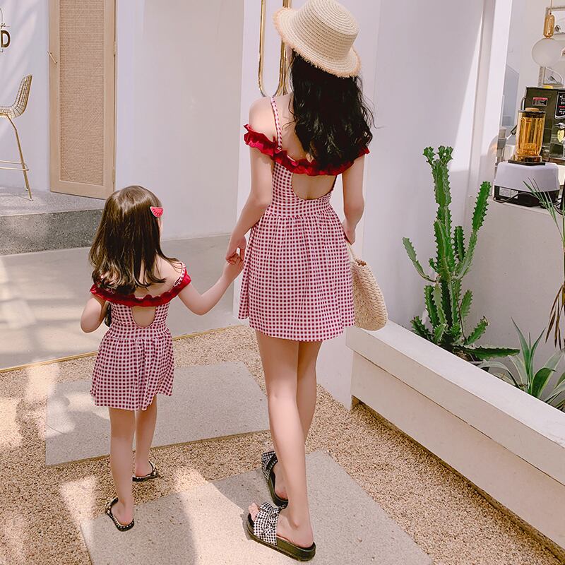 2020年新作ネットホリデー親子母娘チェック柄水着ワンピースレースリトルミドル&スモールキッズ水着 レッド SNSで話題 KIDS男の子 KIDS女の子 韓国ファッション 男の子ママ 女の子ママ 海外キッズファッション 親子コーデ 今日の服 プチプラ mi036845926 | 水着専門店 Gemini By Constellation 日本未入荷
