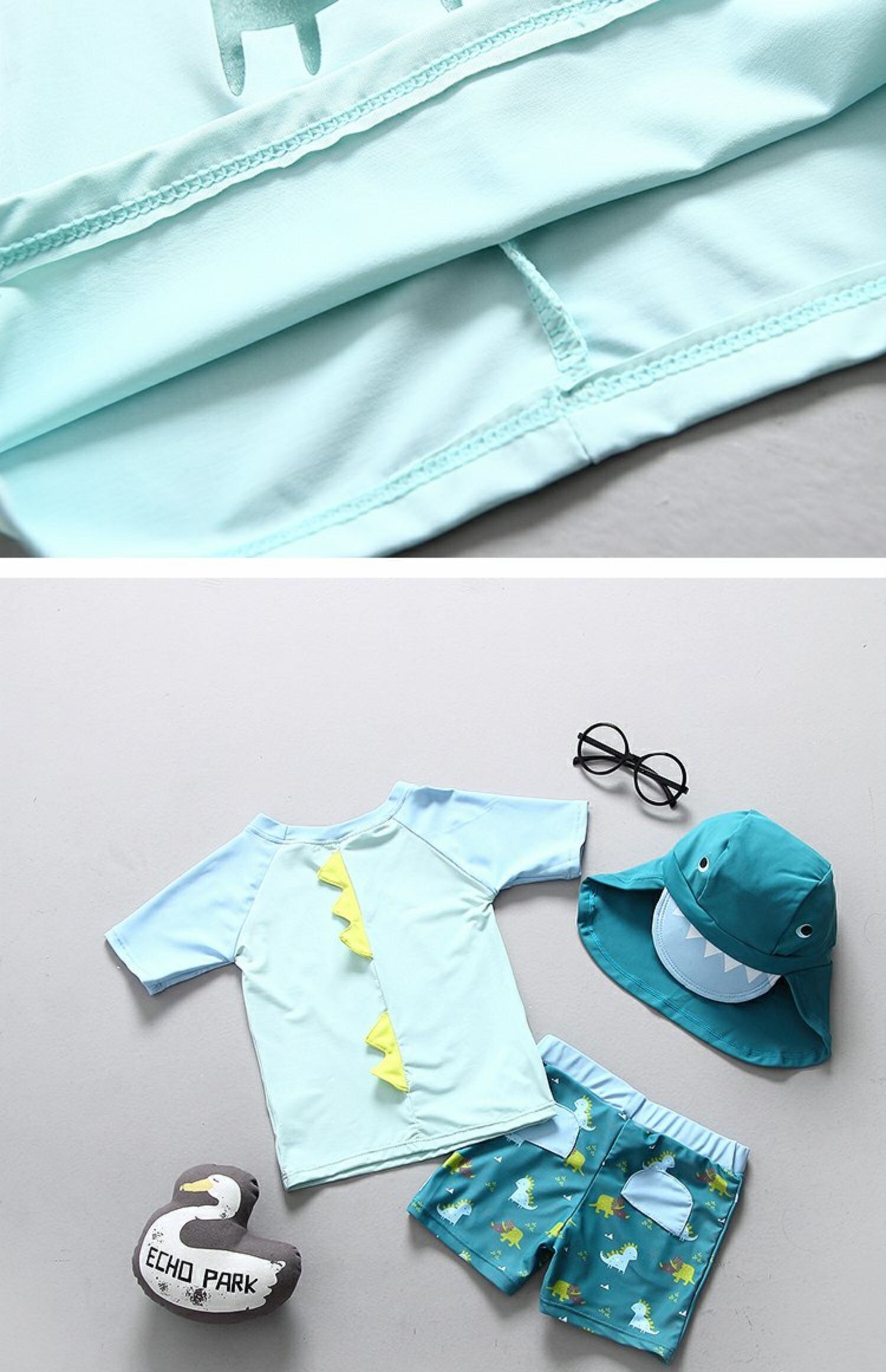 色:17060ホッキョクグマ+サンハット,17061ライトグリーン恐竜+サンハット,81803サメ+サンハット,黄色い子犬のスリーピーススーツ